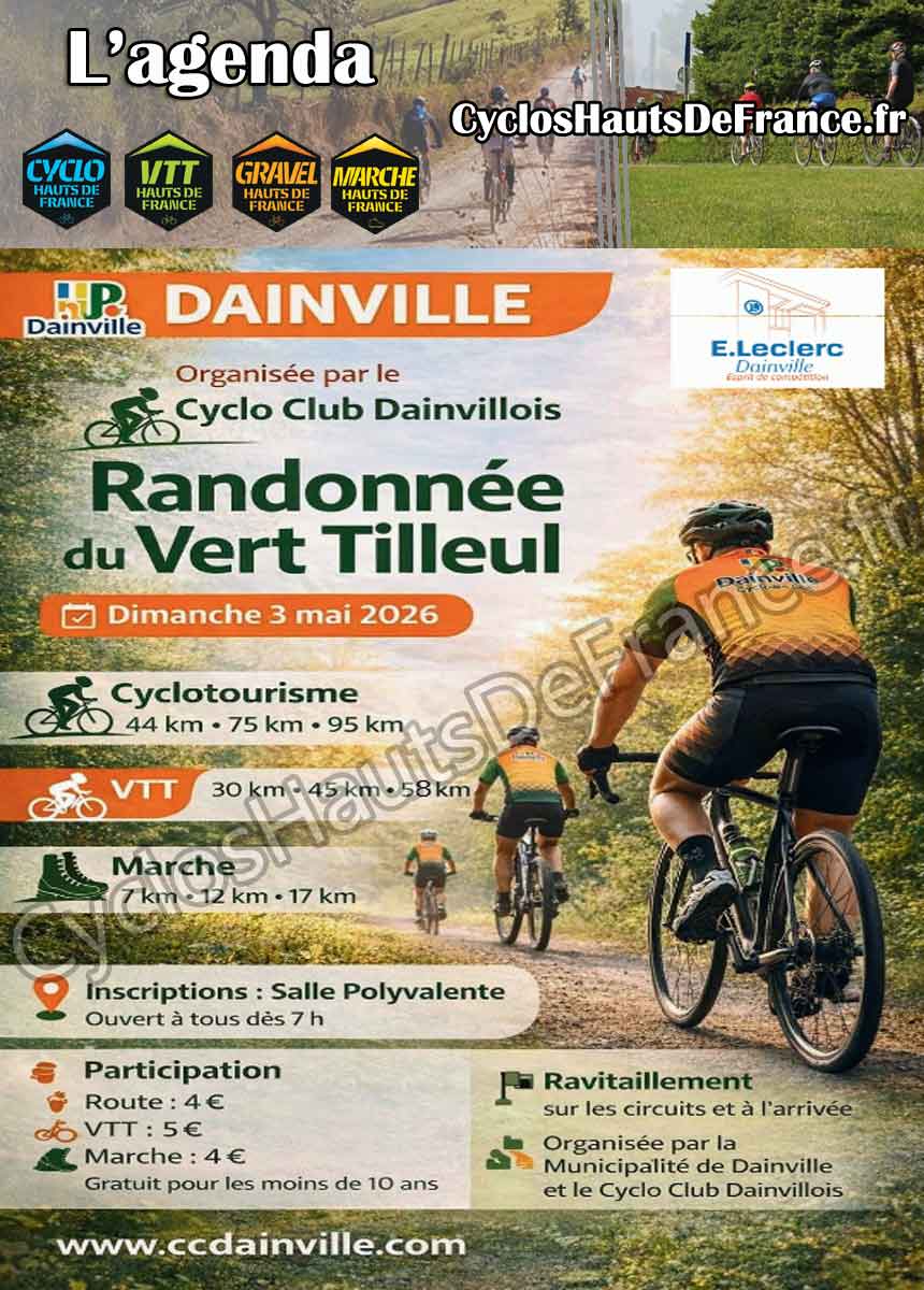 Le Cyclo Club de Dainville organise sa randonnée annuelle le 3 Mai 2026.